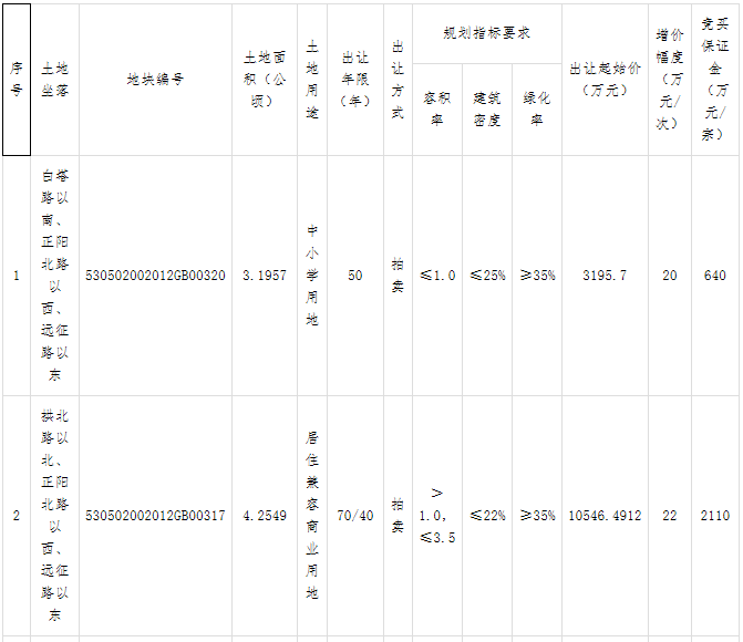 據(jù)了解,這三宗土地分別為530502002012GB00316號(hào)、530502002012GB00317號(hào)和530502002012GB00320號(hào)地塊,總面積為11.6013公頃,總起始價(jià)24030.4051萬(wàn)元。三宗土地均位于白塔路以南、正陽(yáng)北路以西、遠(yuǎn)征路以東,整體搭配出讓。
